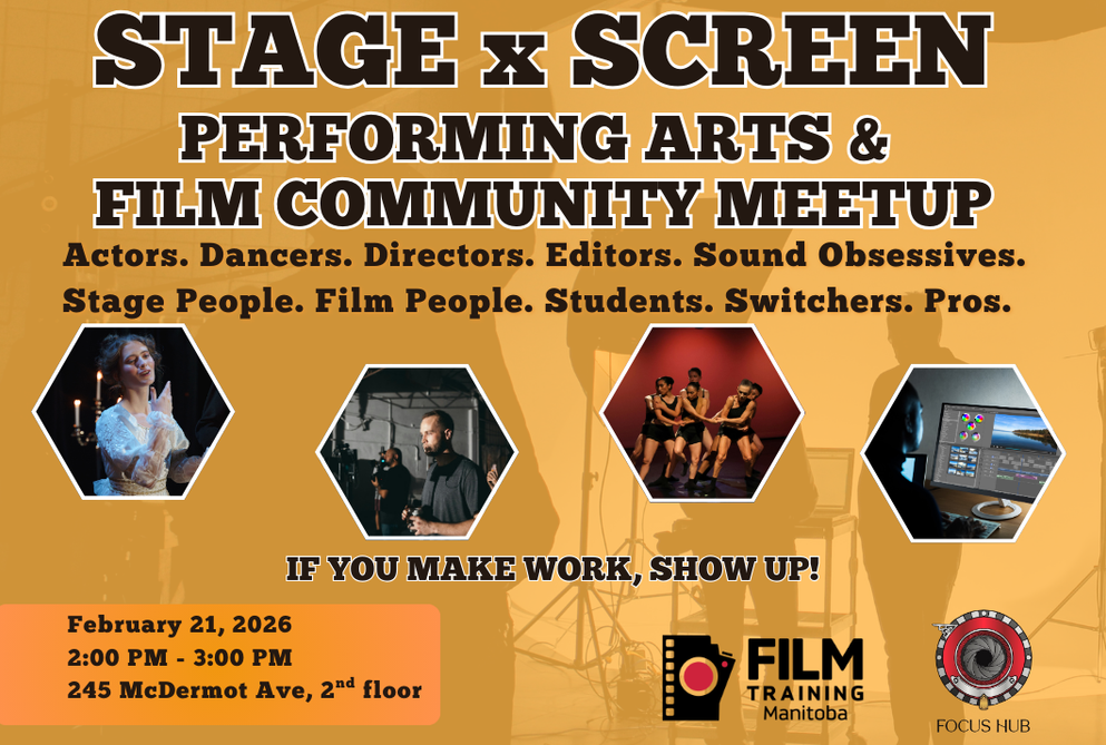 Date: February 21, 2026Location: 245 McDermot Ave., 2nd floorRegistration: Free – Registration form at the bottom* Refreshments will be offered Calling all performers, filmmakers, and creative folks! Focus Hub Inc. and Film Training Manitoba are teaming up to launch a new meetup for people working in (or curious about) the performing arts and film industries. …