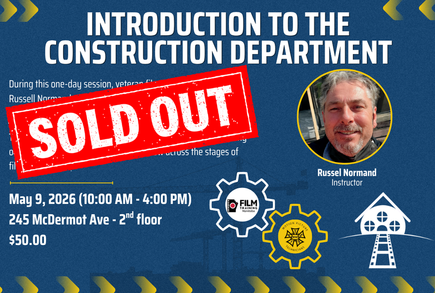 Date: May 9, 2026 (10:00 AM – 4:00 PM)Location: 245 McDermot Ave – 2nd floorRegistration fee: $50.00 (Register using the form below) About the Workshop: During this one-day training session, veteran film professional Russell Normand will provide an introductory course on the construction department for the film and television industry. This course will provide participants …