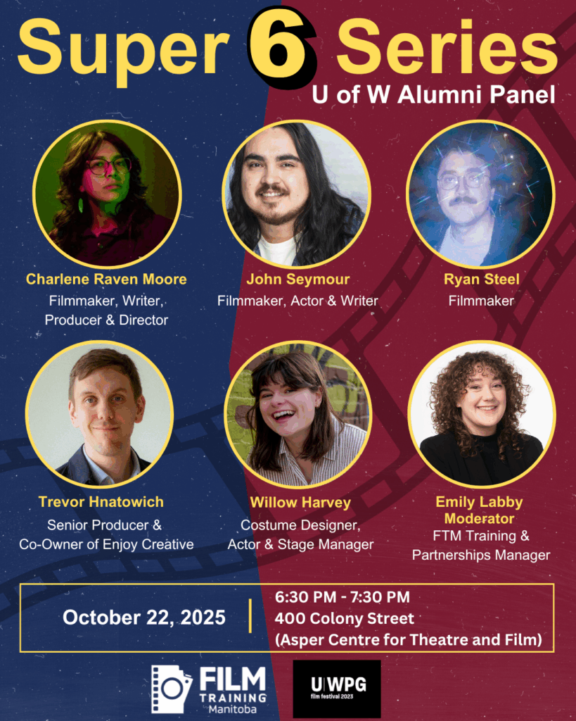 The Super 6 Panel, featuring exclusively UWinnipeg graduates, will give Manitoban film professionals a chance to share their experiences with both experienced and aspiring film professionals.